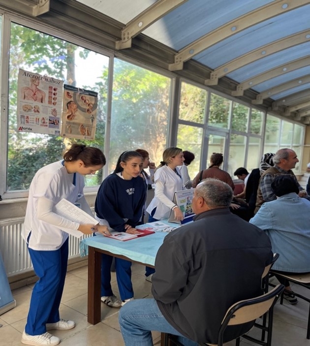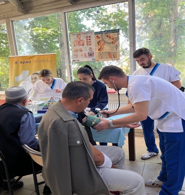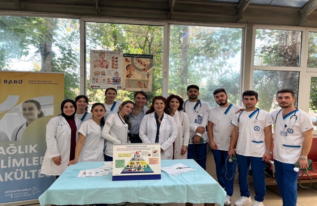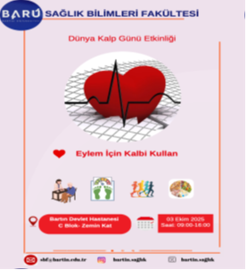 On the occasion of World Heart Day, our event aimed to encourage all individuals to take good care of their hearts, inform their loved ones about this issue, and take steps to raise awareness. Therefore, within the scope of the 29 September World Heart Day, the Faculty of Health Sciences organized a cardiovascular risk factor screening and education activity under the theme “Use Heart for Action” at Bartın State Hospital on October 3, 2025. During the event, participants were provided education on the importance of protecting and improving heart health, focusing on risk factors such as the harms of smoking, the importance of healthy nutrition, benefits of physical activity for the heart, the significance of weight loss for overweight individuals, and the importance of controlling hypertension and diabetes. Blood pressure and weight measurements were also performed. Nine students took part in the activity. They provided education for cardiovascular patients using desktop educational guides and brochures and assisted with blood pressure and weight measurements. The event attracted considerable attention, and all participants stated that they were satisfied with the activity and would like it to be organized more frequently. Brochures prepared within the framework of World Heart Day were distributed to all participants.